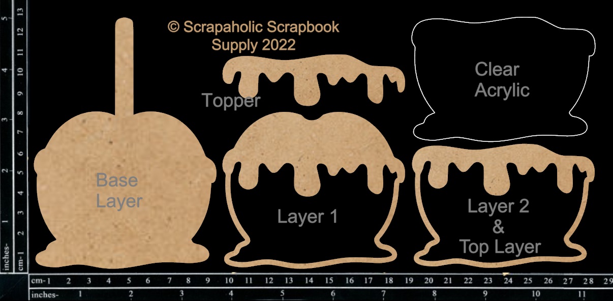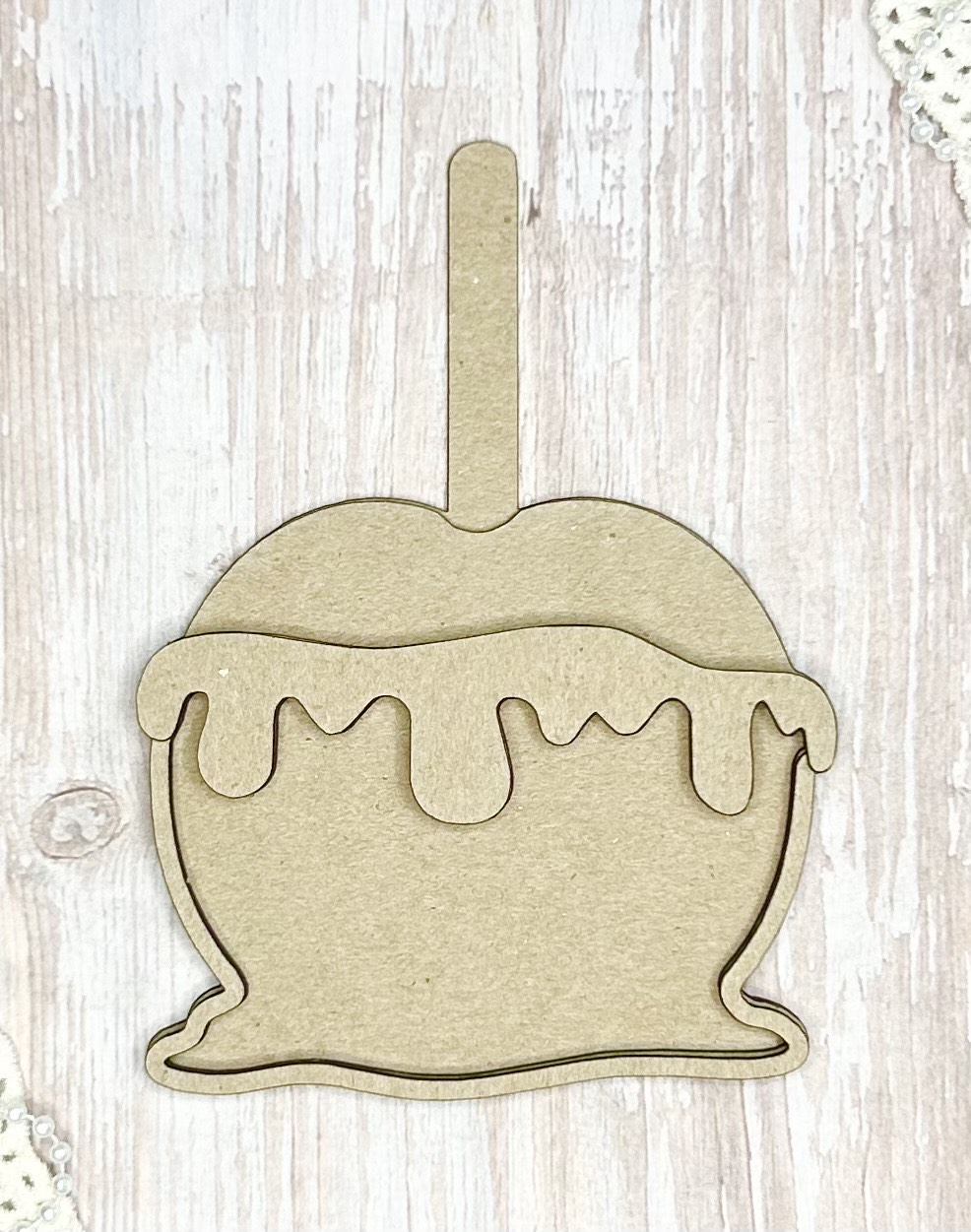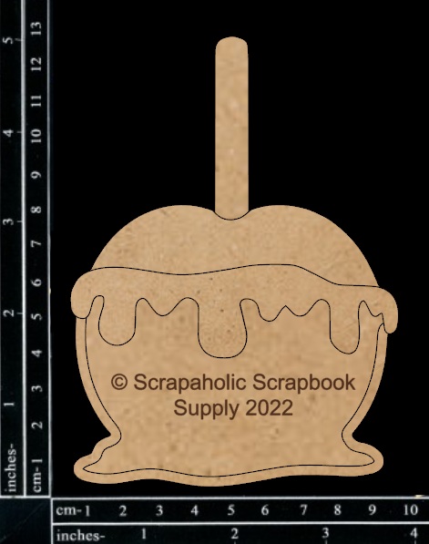 The overall design of the caramel apple is approximately 5″ high and 3.7″ wide