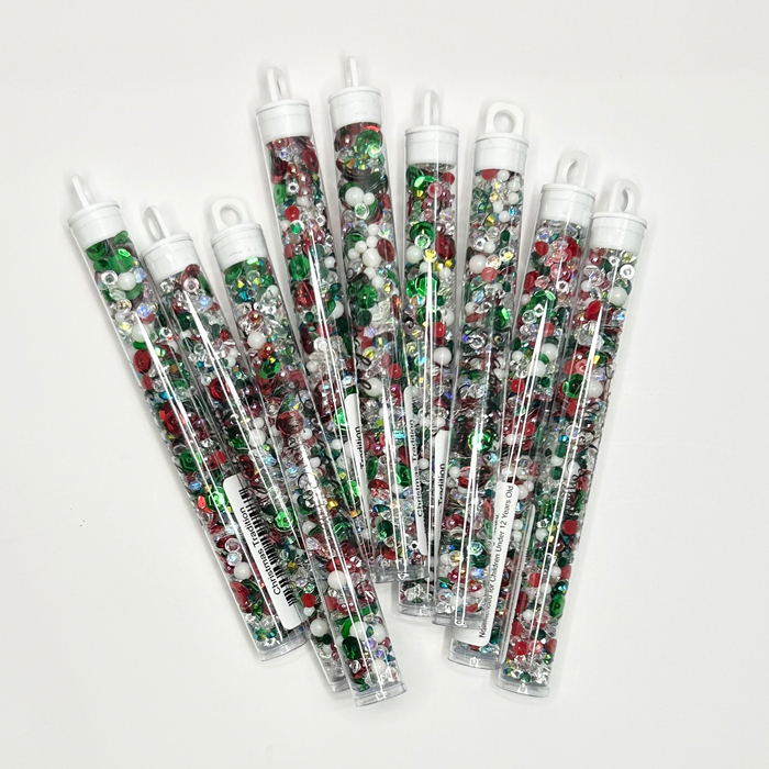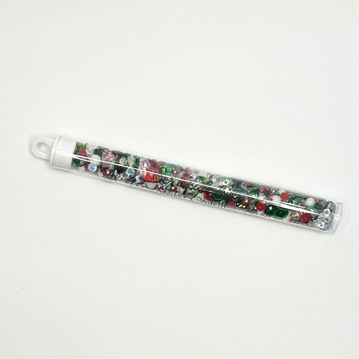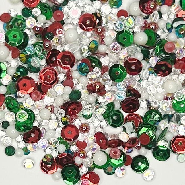 This set is a mix of Rhinestones, sequins and acrylic beads creating a fabulous mix in those deep traditional Christmas Colors.