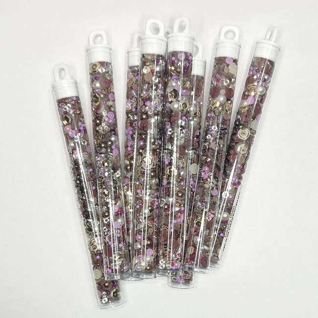 This set is a mix of circle and sprinkle clay slices along with acrylic pearls, sequins, halfback rhinestones, halfback pearls and glass rhinestones.