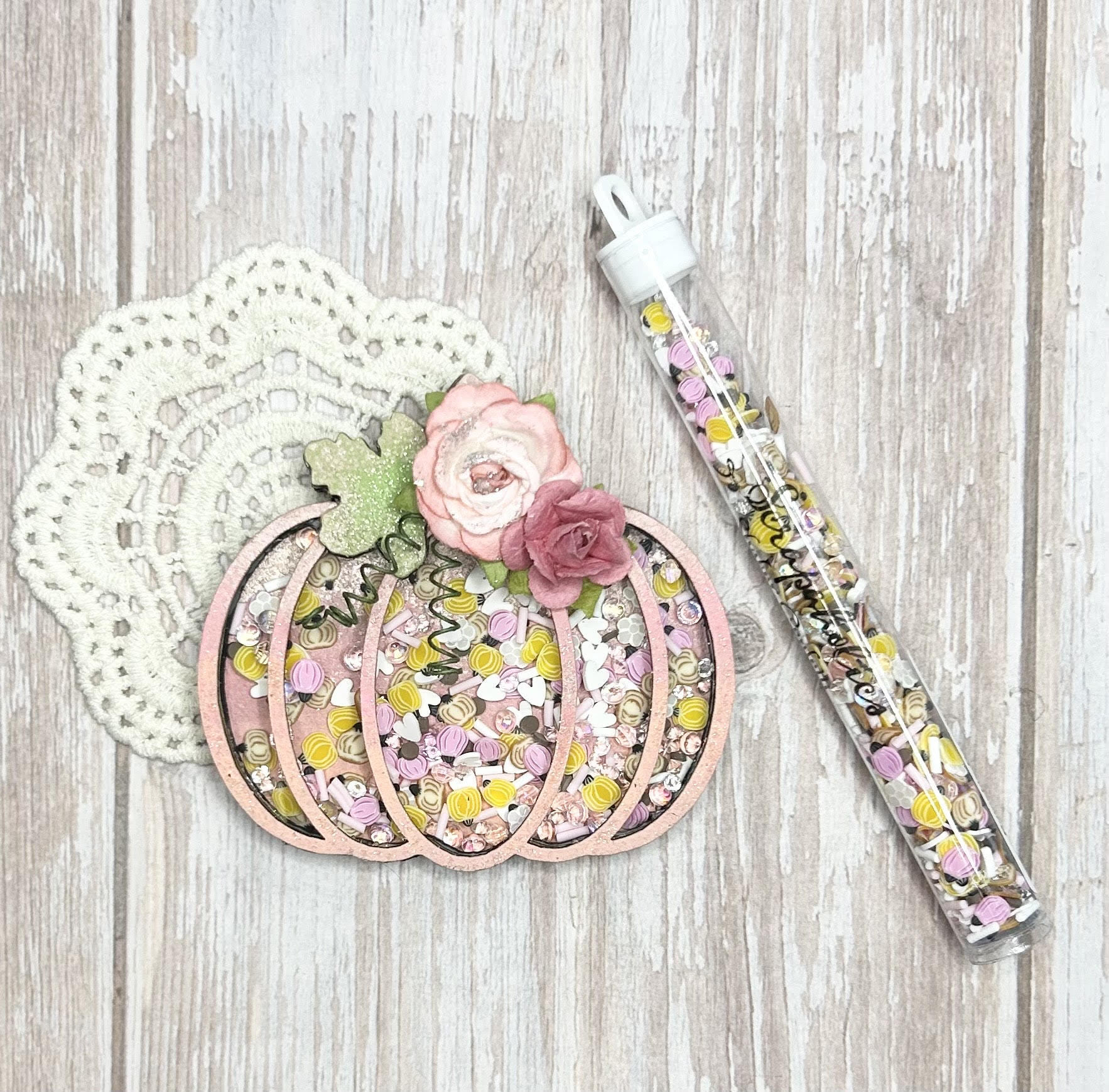 This set is a mix of pumpkin, flower, heart, circle and sprinkle shaped clay slices along with glass and acrylic rhinestones. Size of pieces vary from 1mm to 4mm.