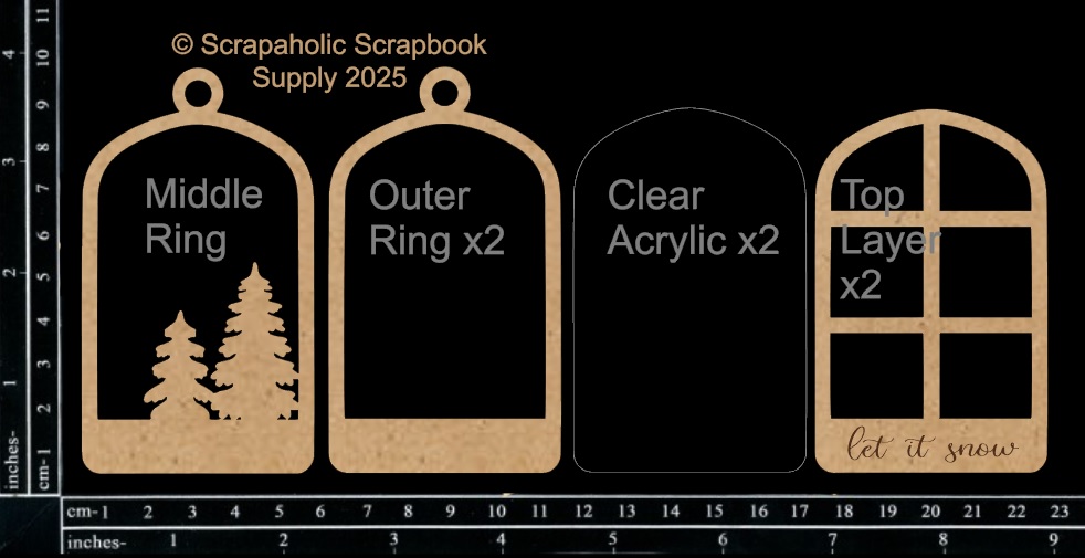 This design comes with three middle rings (6mm thick shaker space), two acrylic pieces and two top pieces to create an amazing see through design which has a loop incorporated for hanging. Use it as an ornament or a gift tag! Each side has an engraving of “let it snow” which can be turned inwards if you wish to have the bottom space blank for your own personalization.